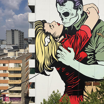 L’Est de Paris est le terrain de jeux préféré des street-artistes. Au 107 rue Oberkampf, l’association le M.U.R permet à un artiste international de peindre un mur et d’ainsi redécorer le quartier toutes les deux semaines.
