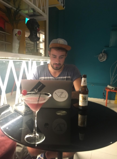 Tout a commencé il y a 3 ans, quand j’étais encore dans mon école d’ingénieur (Université Technologique de Compiègne -UTC-). Dans notre cursus, chaque étudiant doit faire un stage de 6 mois en début de quatrième année et un autre à la fin de la cinquième année. J’ai fait mon premier stage en Australie, à Byron Bay, dans une micro-entreprise de services webs (Ostral Pty Ltd). A la fin du stage, le patron m’a proposé de continuer à réaliser quelques missions pour Ostral en tant que freelance, en parallèle de mes études. Ça a été le début de ma carrière de digital nomad, même si je suis retourné en France pour un semestre, dans le sens où j’ai découvert que je pouvais très bien travailler à distance tout en ayant du temps pour profiter de l’endroit où je me trouvais. J’ai pu le confirmer 6 mois plus tard en partant pour un autre échange au Chili tout en continuant mes missions pour Ostral. J’ai complètement accroché à ce mode de vie et j’ai fait mon stage de fin d’études dans l’optique de signer un contrat en télé-travail à la fin.
